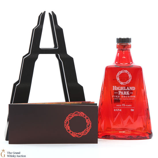 This stunning Highland Park 15 year old single malt follows the 'Ice' edition to complete this Highland Park two-part series. The 'Fire' edition celebrates Muspelheim, the glowing Norse fire realm of destruction. The malt was matured in refill Port casks and bottled at 45.2% abv. It's presented in a cradle shaped like a mountain.