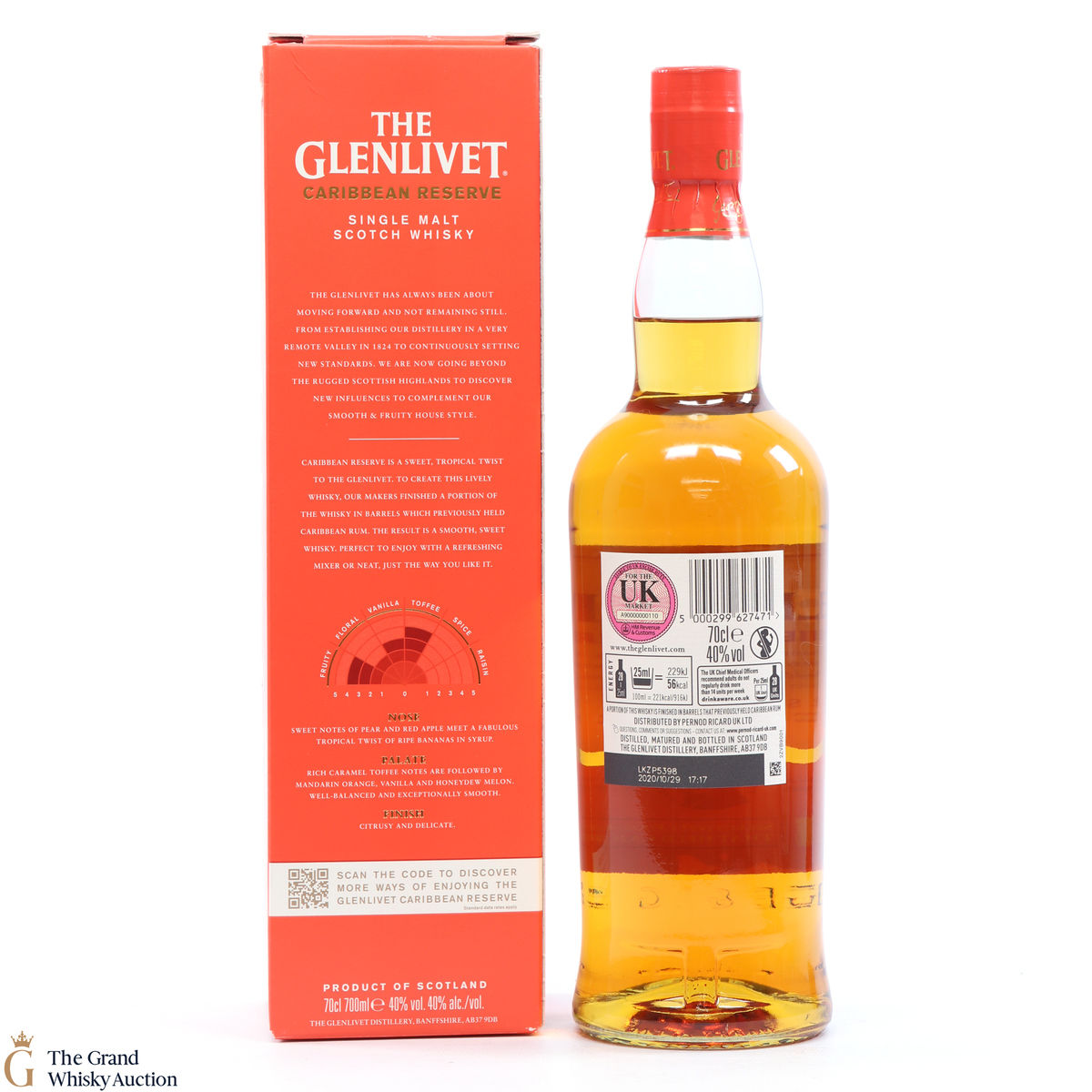 Distilled at Glenlivet Distillery in Speyside, this single malt was finished in casks that previously held Caribbean Rum.