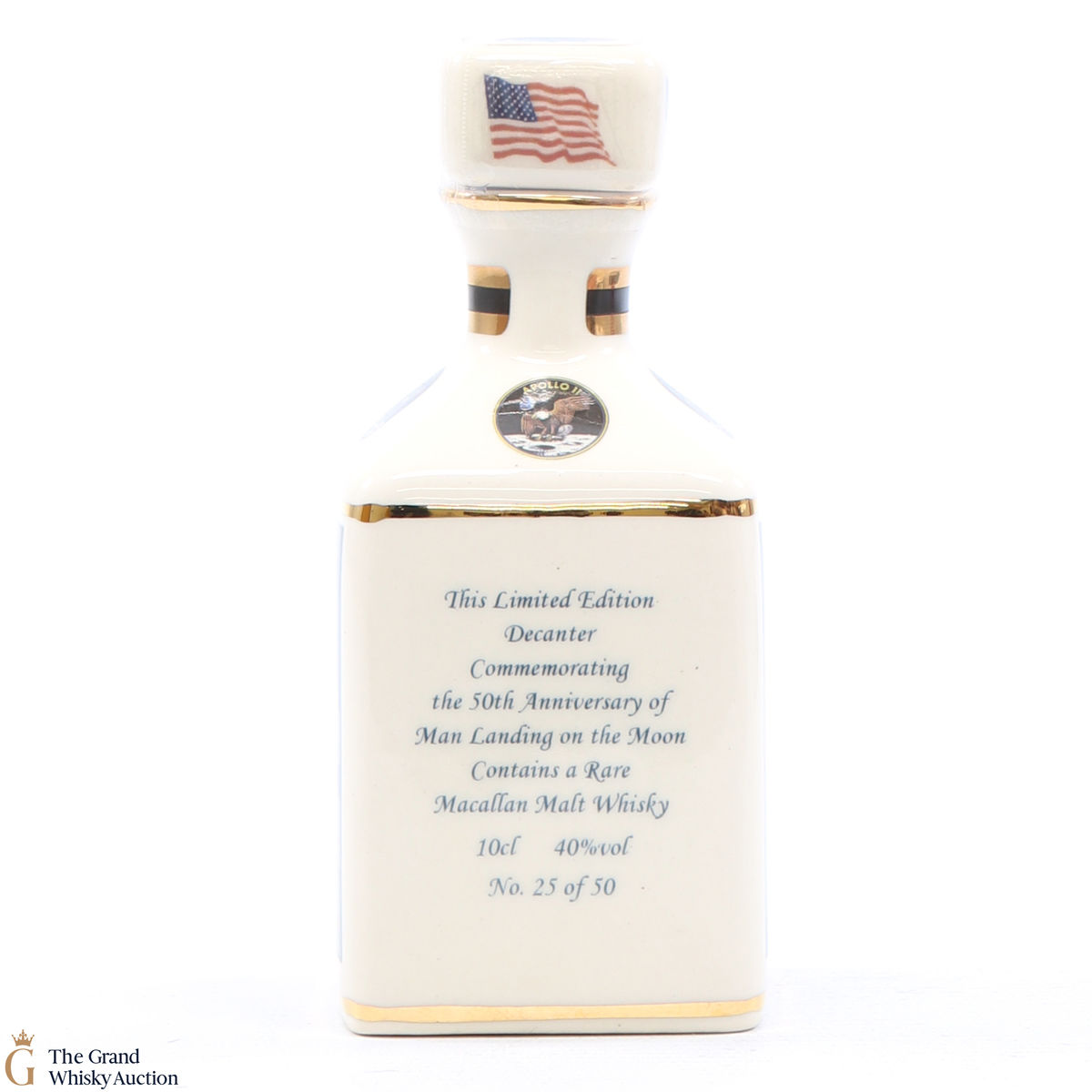 A mini decanter commemorating the 50th anniversary of Man Landing on the moon, Neil Armstrong. Filled with Macallan, this is one of 50 bottles released.