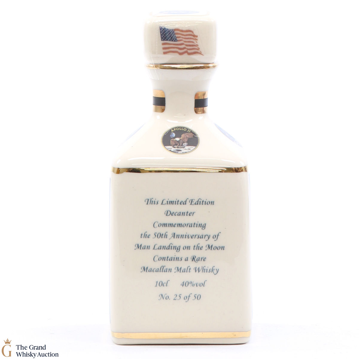 A mini decanter commemorating the 50th anniversary of Man Landing on the moon, Edwin (Buzz) Aldrin. Filled with Macallan, this is one of 50 bottles released.