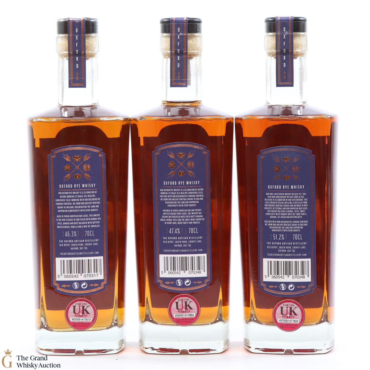 This lot includes 3 x 70cl bottles; Batch 1, 2 & 3 of Oxford Rye - 2017 Heritage Grains bottlings.