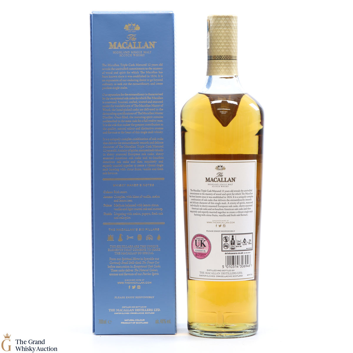 The 12 year old single malt was matured for 12 years and drawn from a combination of European sherry seasoned casks, American sherry seasoned casks and American ex-bourbon casks. It is part of Macallan's Triple Cask range which was launched in 2018, taking the place of the Fine Oak range.