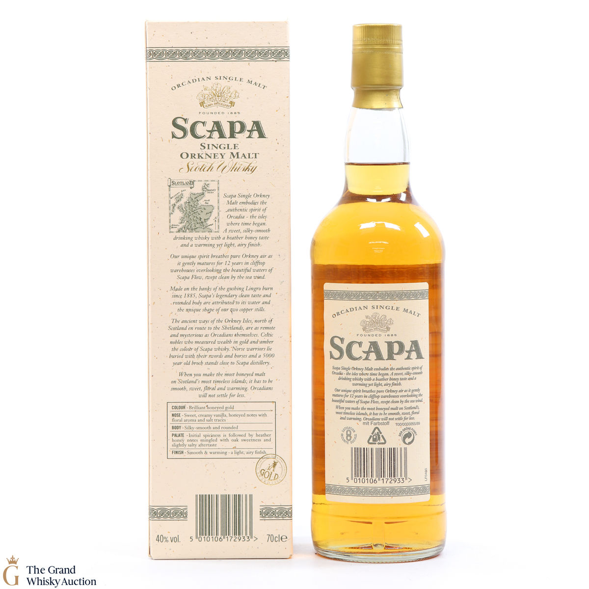 A long discontinued 12 Year Old from the Scapa Distillery in Orkney. It was matured for 12 years in clifftop warehouses overlooking the beautiful waters of the Scapa Flow.