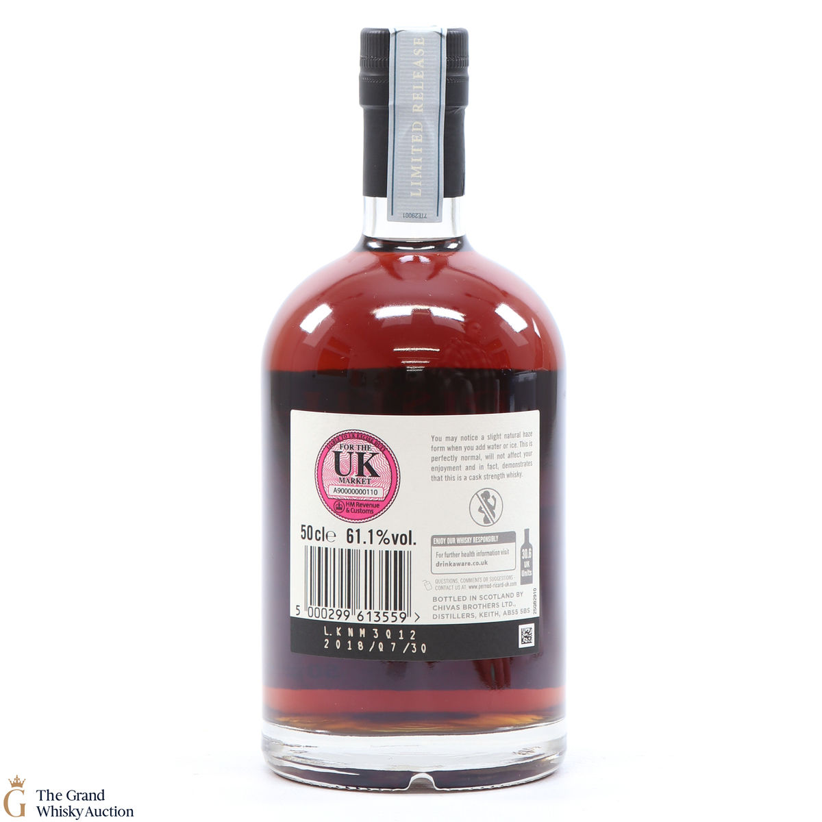 Due to the various ages of bottles and their seals, the condition of liquid is at the buyer's discretion and no claim can be lodged against failure/leakage in transit. Loss and breakage cover is available at 3% of the hammer price as standard. If the lot is not insured, no claim can be lodged against the courier or The Grand Whisky Auction for breakage or loss in transit.