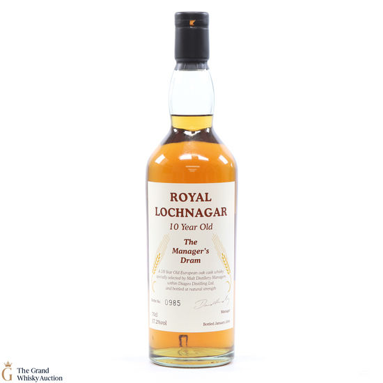 This 10 year old Royal Lochnagar is from the highly collectable Manager's Dram series of single malt releases. The bottles were released to be available exclusively to employees of what is now known as Diageo. Each release was selected by distillery managers within Diageo and bottled at natural cask strength.