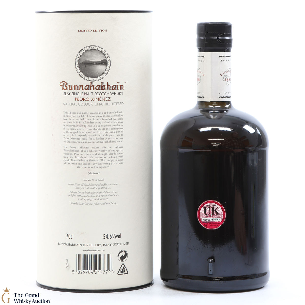 A limited-edition bottling from the Bunnahabhain distillery on the north-east coast of Islay. This is a 11 year old single malt was aged in a Pedro Ximenez cask.