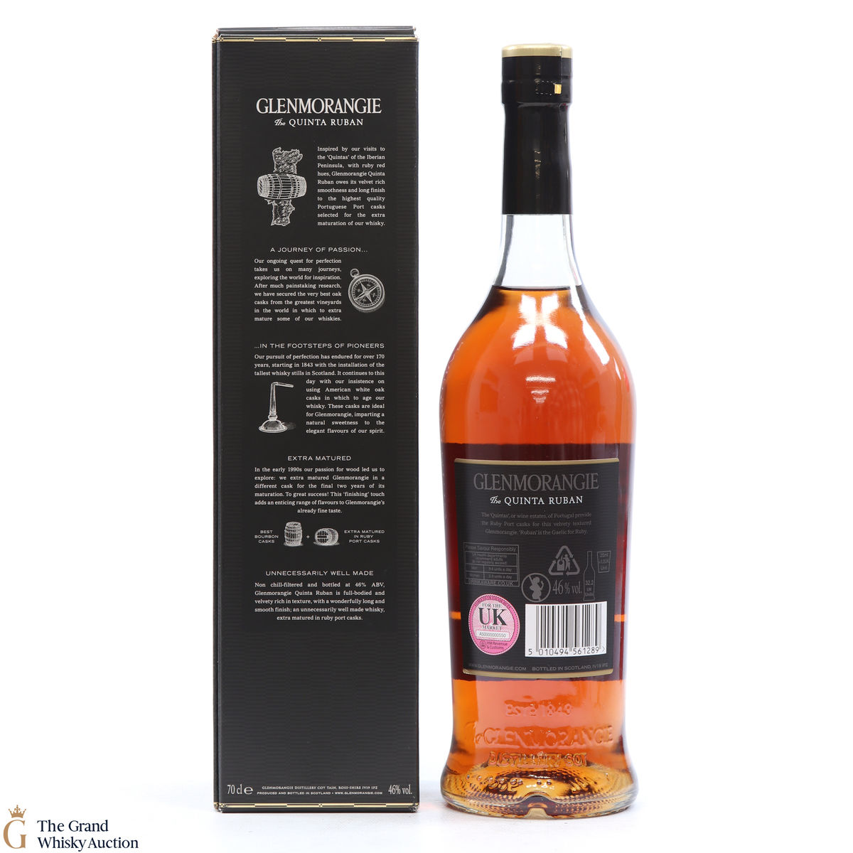 Glenmorangie Quinta Ruban is matured in bourbon casks before finishing in the finest Ruby Port casks from the "Quintas" or wine estates of Portugal. Ruban is Gaelic for Ruby.