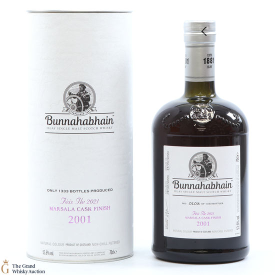 For Feis Ile 2021, Bunnahabhain Distillery released this unique bottling. Distilled back on the 8th of October 2001, this single malt was finished in a cask that once held Marsala fortified wine resulting in a combination of Sicilian flair and Scottish tradition. Bottled on the 19th of January 2021, this is one of only 1333 bottles produced.