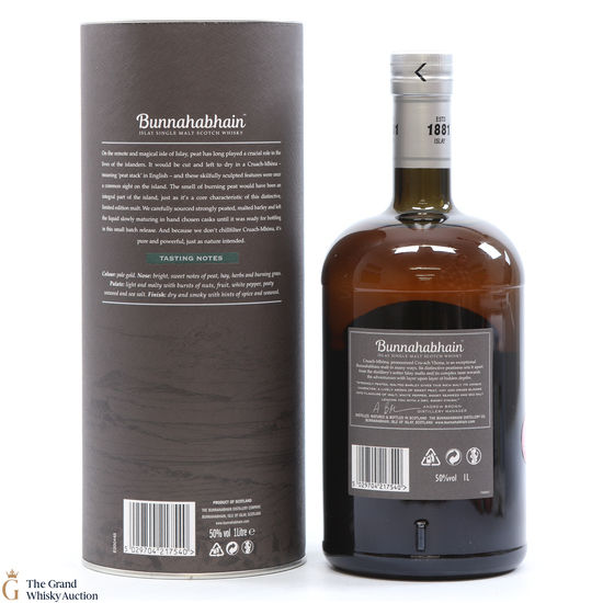 A travel retail exclusive, this Bunnahabhain release is named Cruach-Mhona which is Gaelic for "Peat Stack". This is a 1 litre bottling.