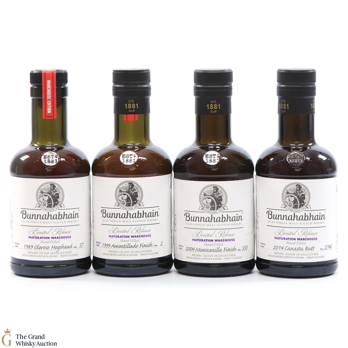 Included in this lot is 4 x 20cl Bunnahabhain Limited Release Maturation Warehouse hand fills: