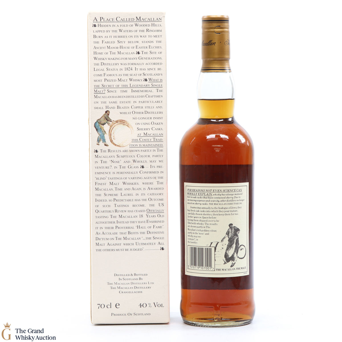 This is an old-style presentation of Macallan 10 Year old was bottled in the 1990's. This classic Speyside malt whisky matured in sherry oak casks from Jerez. Very collectable.