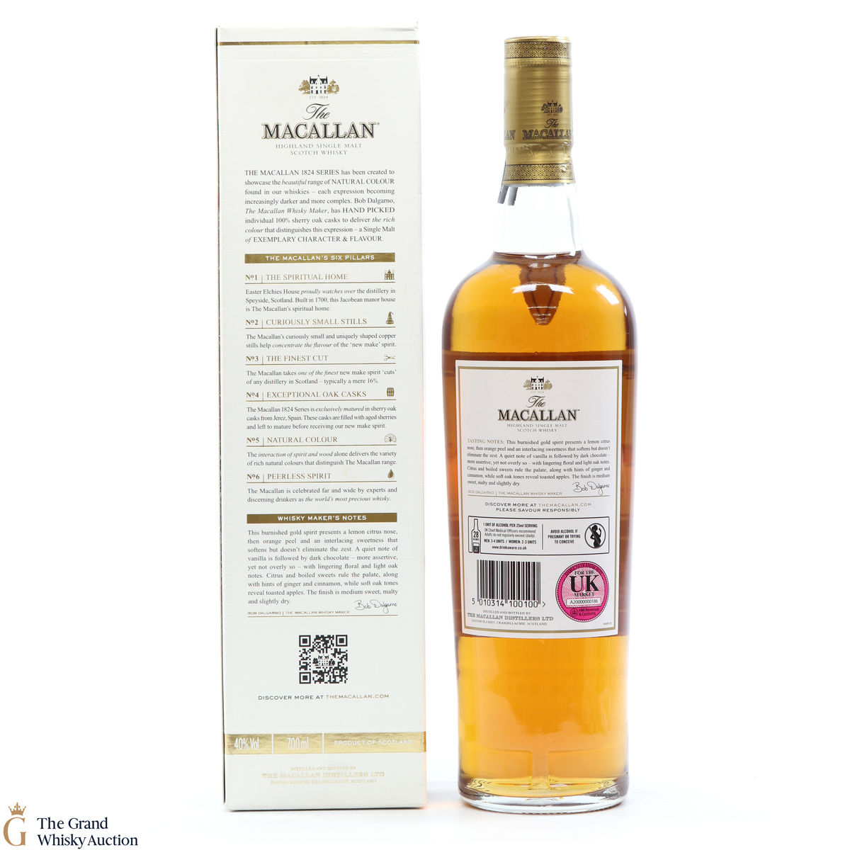 The Macallan 1824 Series celebrates natural colour. The most distinctive and defining characteristic of Macallan is the sherry-seasoned oak casks that are used to mature the whisky. This series shows commitment to 100% natural colour, drawn from wood. The colour of each expression becomes deeper as the range progresses.