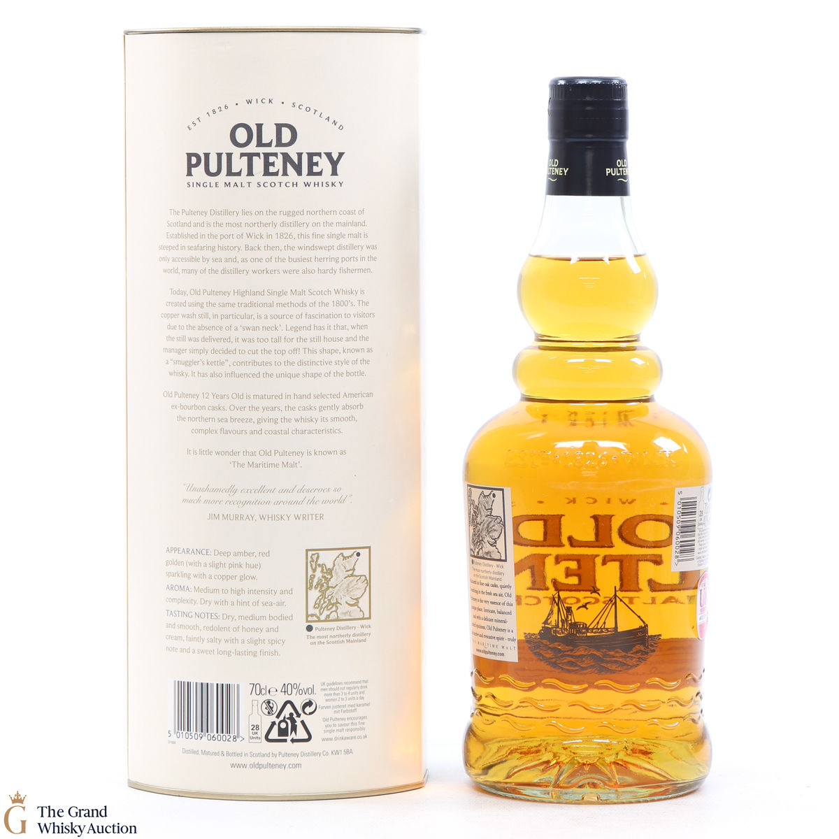 Old Pultney is known as the Maritime Malt due to the distillery location at the very North of Scotland and this is honoured with the unique shape of the bottle.