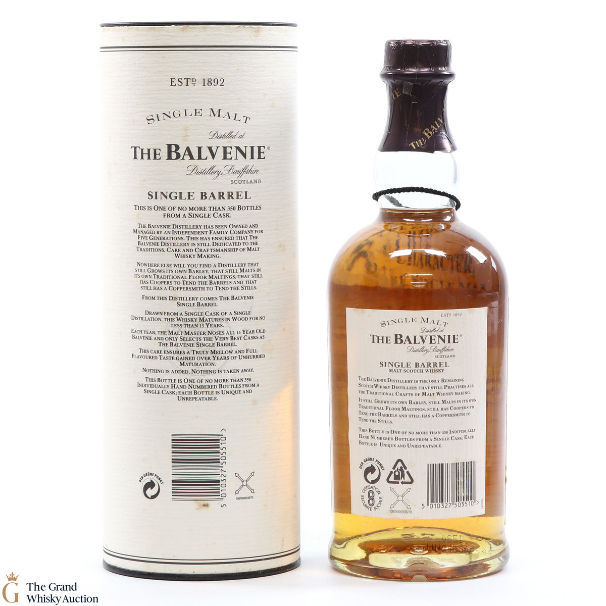 An older edition of Balvenie's classic single barrel series, a 15-year-old single malt, drawn from a single traditional oak whisky cask and bottled by hand.