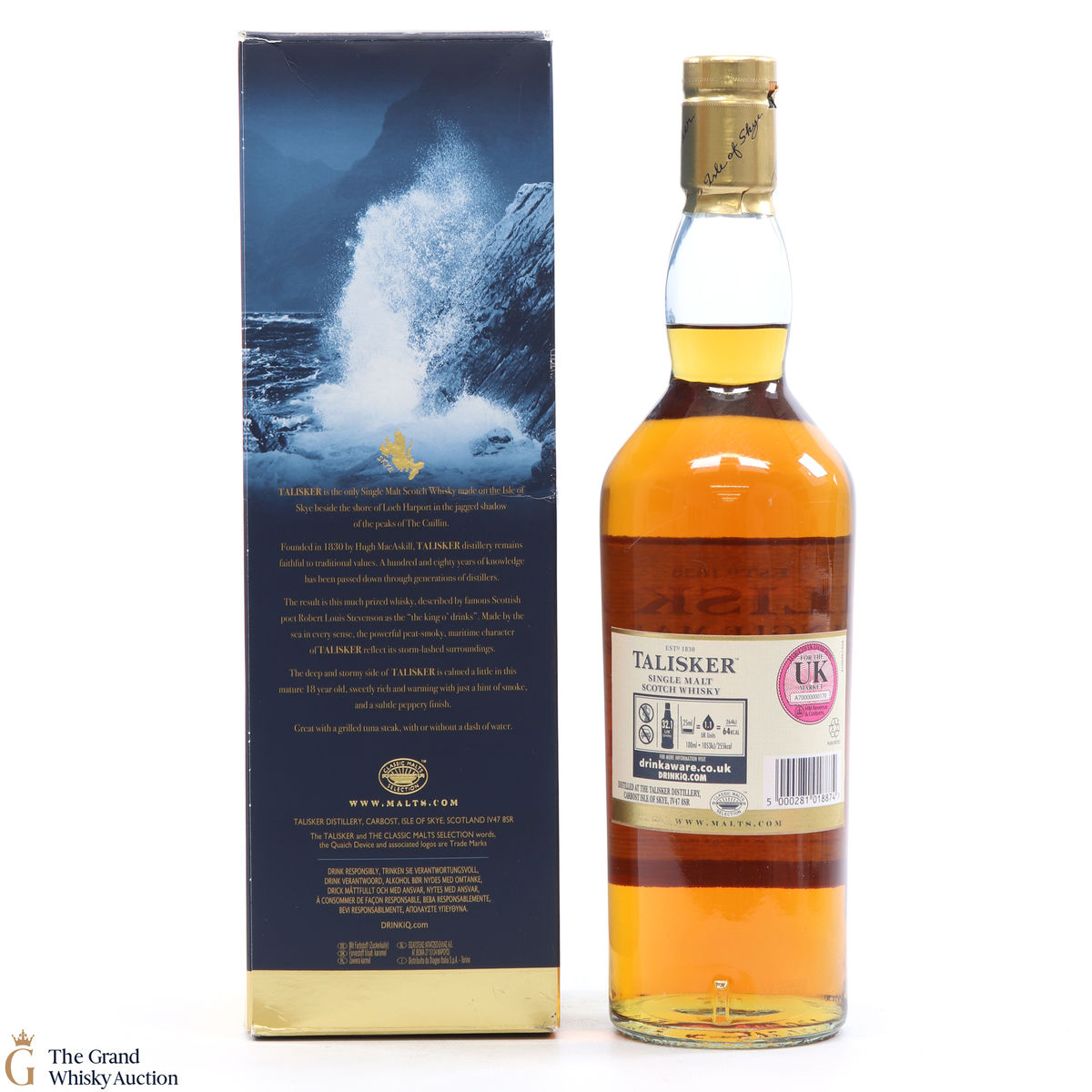 Time has mellowed but not tamed this powerful 18 year old Talisker, made beside Loch Harport in the shadow of the Cuillin range. A rich, sweet nose introduces familiar, smoky maritime aromas. Full-bodied, this smooth malt open sweetly, then becomes more assertive, with a whiff of smoke. It has an unmistakeable, richly warming finish, more subtle here than in the 10 year old.