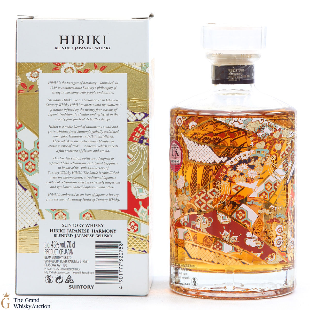 Hibiki Japanese Harmony is a blend of over ten malts and grains featuring Yamazaki, Hakushu, and Chita all aged in five types of cask. It was developed by fourth generation chief blender Shinji Fukuyo with production overseen by third generation master blender and great-grandson of the founder, Shingo Torii.