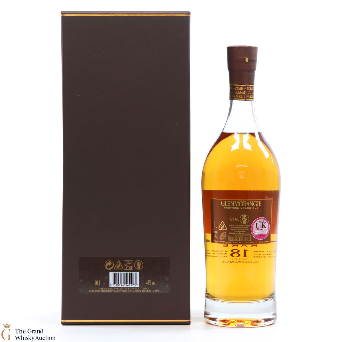 This bottle is an 18-year-old Extremely Rare, Highland single malt produced by Glenmorangie. It has been perfected by the sixteen men of Tain who have specially aged this bottle for 18 years in superior oak casks.