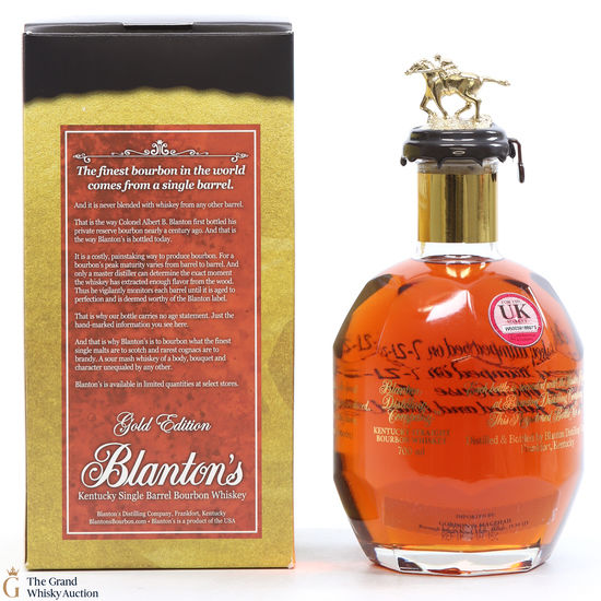 PLEASE NOTE: The wax seal on Blanton's bottles are prone to cracking in transit due to their design. Therefore, as stated in our T&C’s, we do not and will not accept liability should the seal be breached, broken, split or leak in transit. Additionally, please know due to the design of the internal cardboard packaging that surrounds the top of the bottles, it too may be torn. By bidding on this lot you have understood this to be true. Insurance is for complete breakage or loss in transit only.