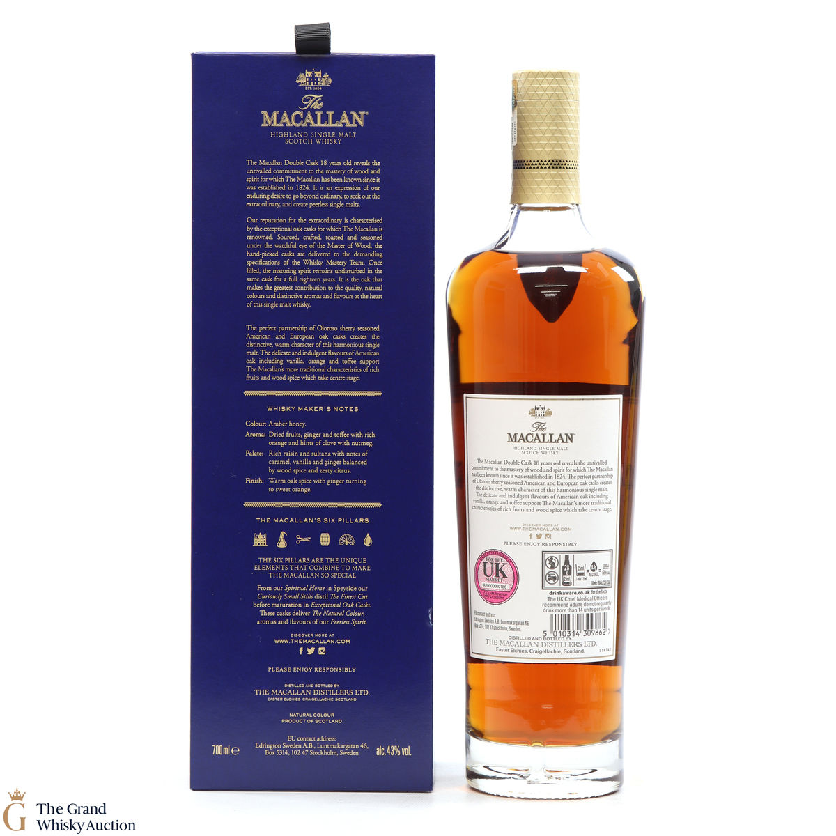 This 18 Year Old Macallan was matured in a combination of American and European Sherry oak for a minimum of 18 years. It is part of the Macallan Double Cask range, which marries the classic Macallan style and the sweetness of American oak.