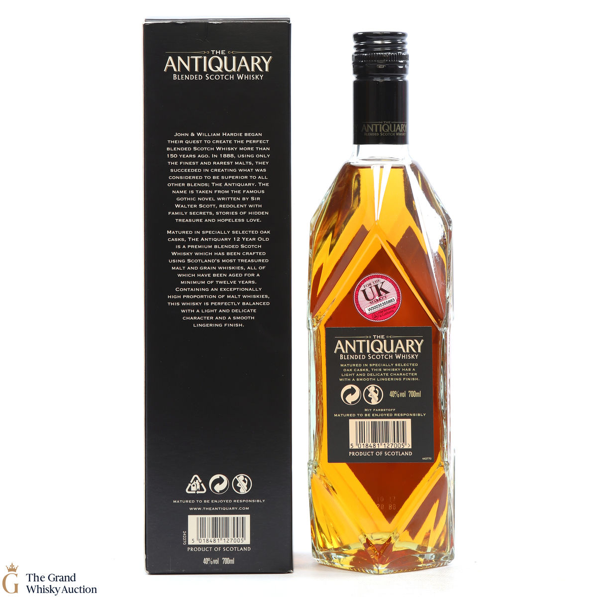 This bottling from Antiquary is a blend of some of Scotland's greatest 12-year-old malt and grain whiskies, including Royal Lochnagar, Tomatin, Cragganmore, Mortlach, Bowmore, Glenkinchie to name a few. Also, a quirky feature is that In the lid of this bottle box, there is a coaster that pops out!