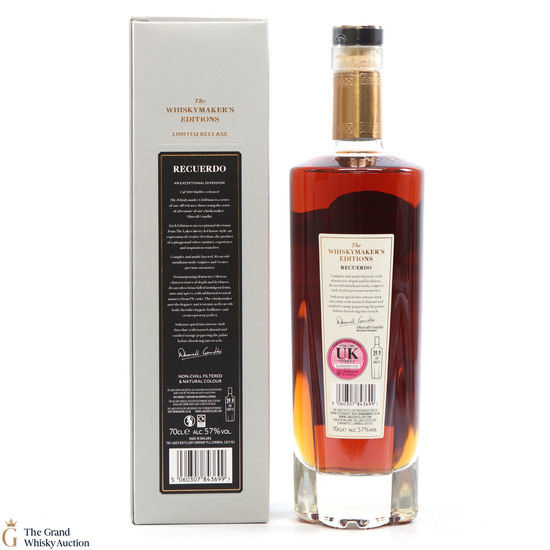 Only 900 bottles are available of the 57% ABV Recuerdo whisky, which is non-chill-filtered.