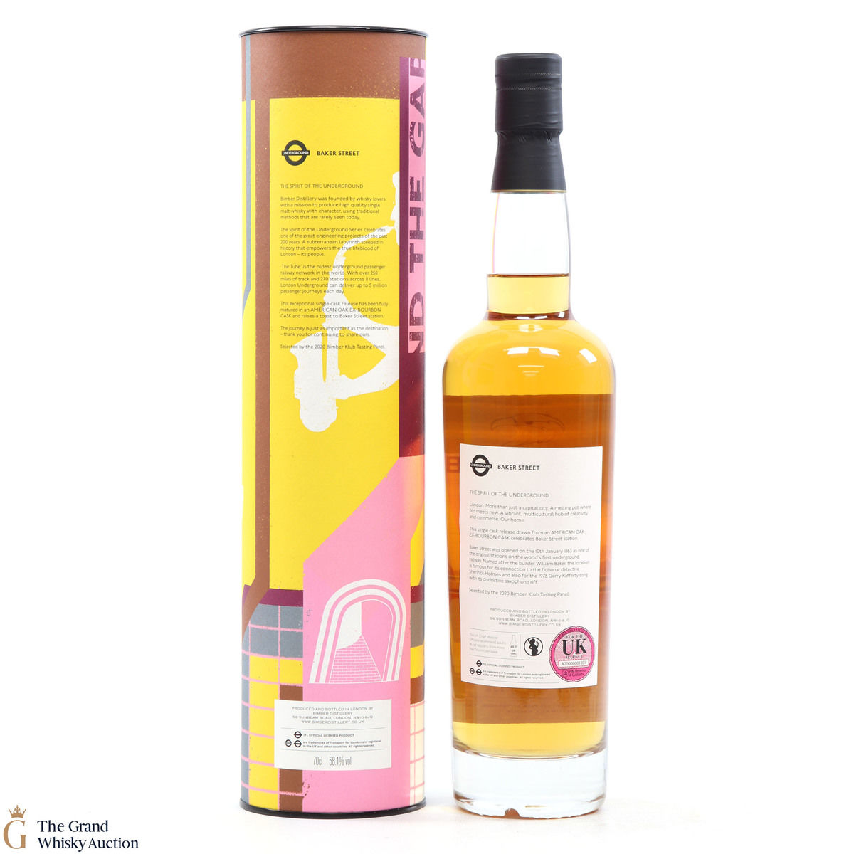 Distilled at the Bimber Distillery based in London, this single malt was matured in ex-bourbon cask #126 and bottled in May 2021 as part of The Spirit of the Underground series, given the title of Baker Street. Complete with its colourful packaging, this is one of only 264 bottles produced.