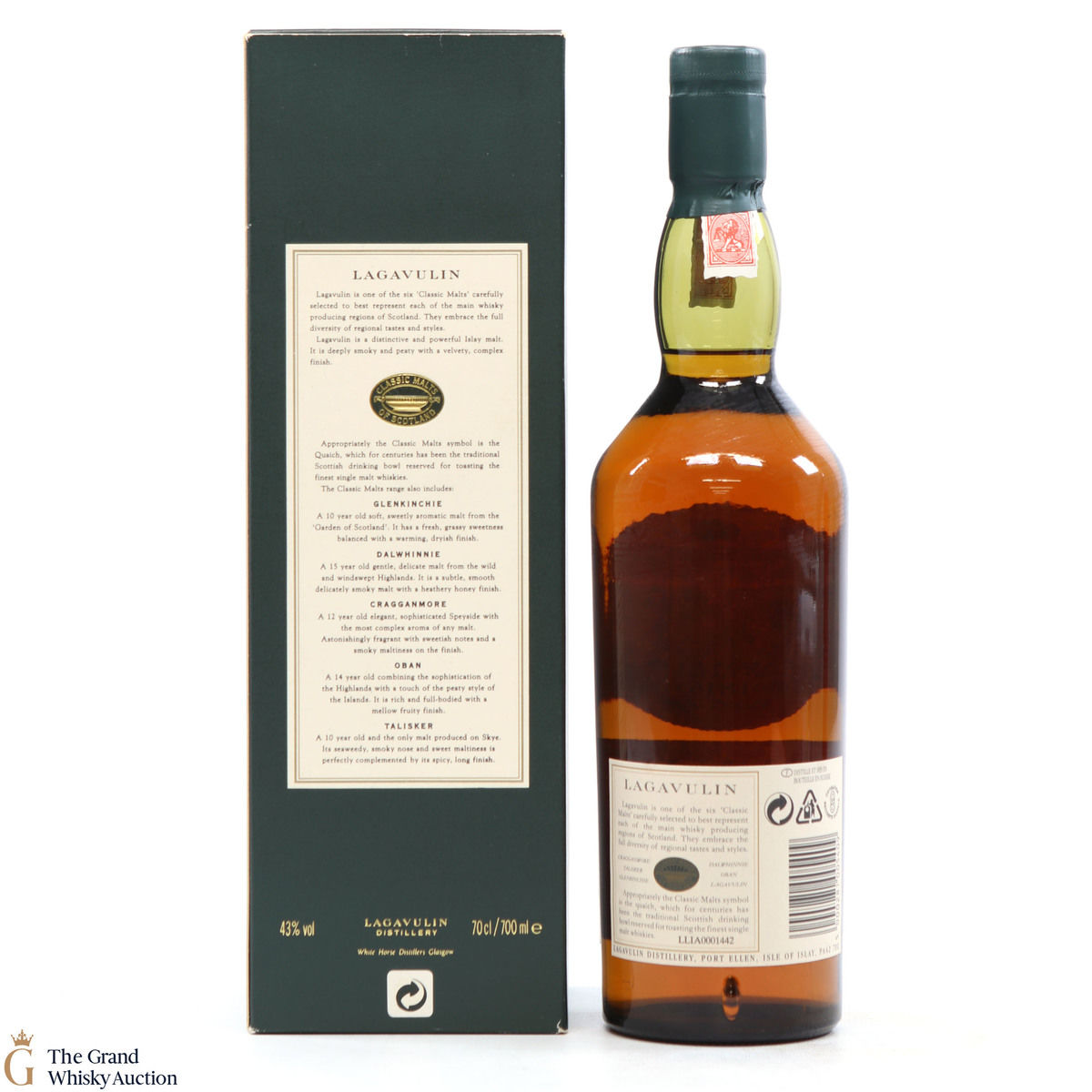 Due to the various ages of bottles and their seals, the condition of liquid is at the buyer's discretion and no claim can be lodged against failure/leakage in transit. Loss and breakage cover is available at 3% of the hammer price as standard. If the lot is not insured, no claim can be lodged against the courier or The Grand Whisky Auction for breakage or loss in transit.