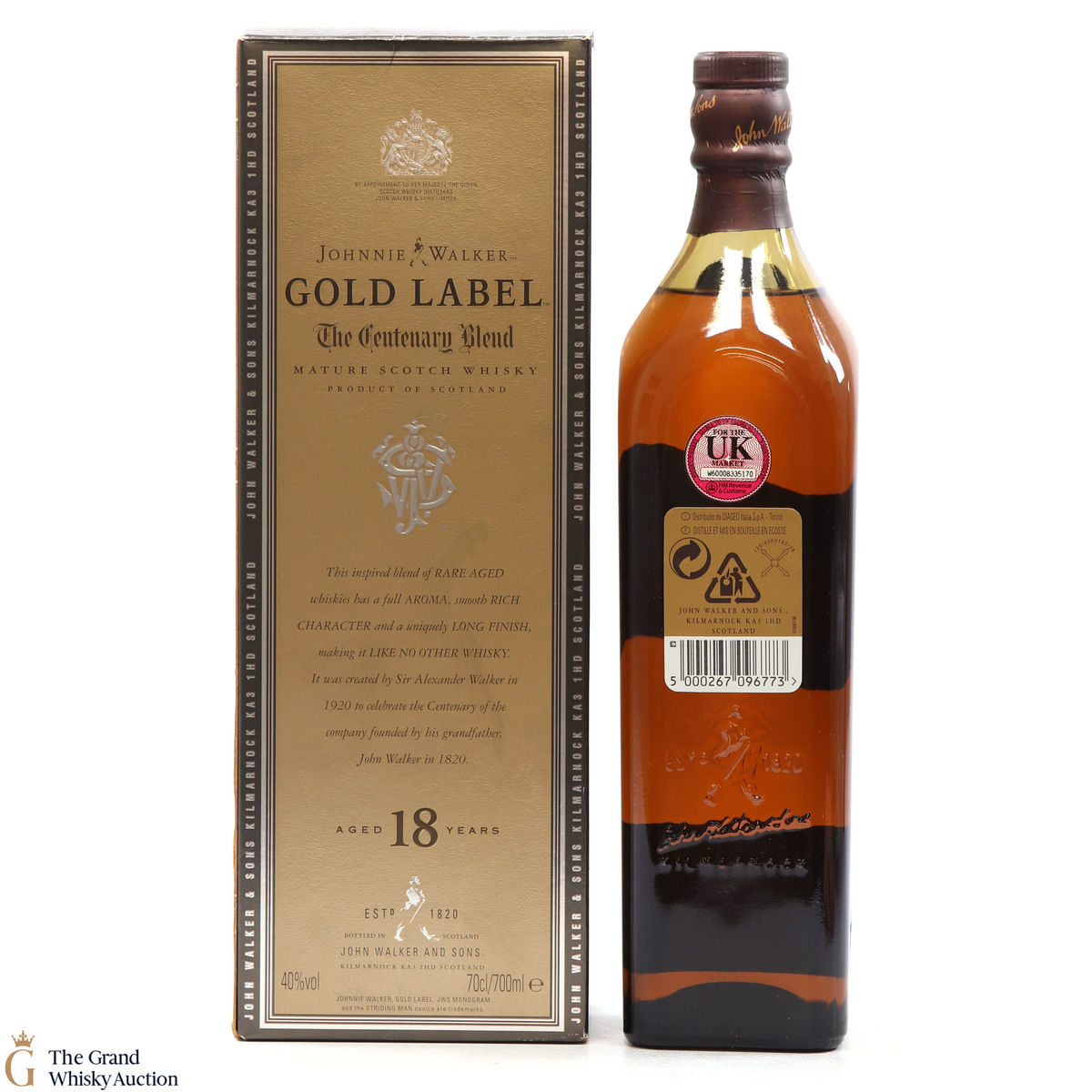 This is a blend of over 15 single malts. Originally, Gold Label was bottled at 18 years and labelled 'The Centenary Blend' by Sir Alexander Walker in 1920 to celebrate the centenary of the company founded by his grandfather John Walker in 1820.