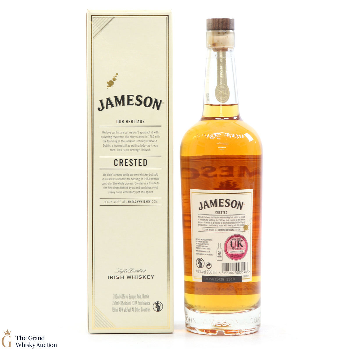 Triple distilled Irish whisky from Jameson. This bottling celebrates the first drops of Bow Street.