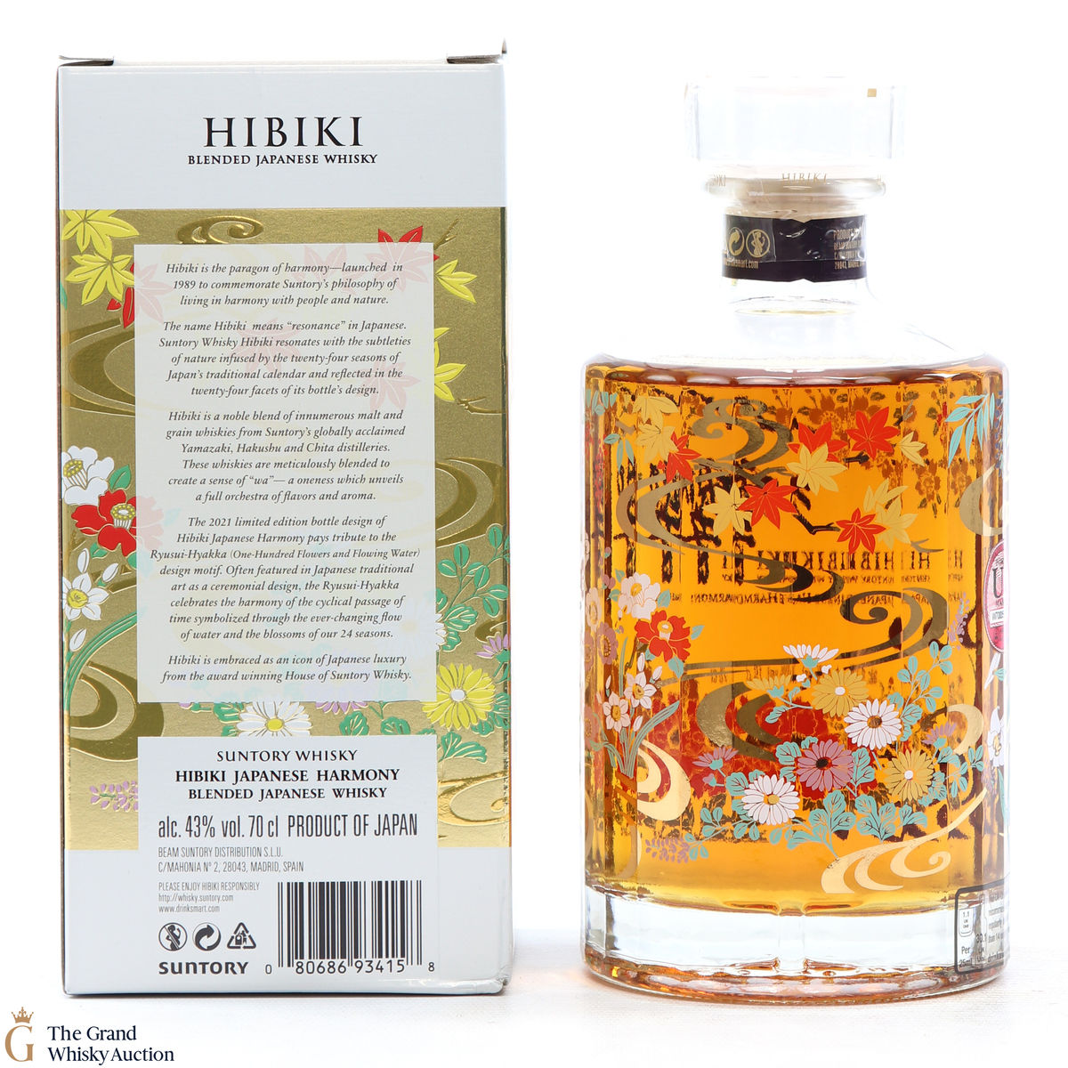 This is a limited edition, specially designed bottle with painted flowers and flowing ribbons of water. The 2021 special edition pays homage to the Ryisui-Hyakka (One Hundred Flowers and Flowing Water) and celebrates different seasonal flowers which help characterise the Japanese seasons. 5 types of casks were used and in typical Hibiki fashion, the bottle always has 24 facets which represent 24 seasons in the Japanese lunar calendar.