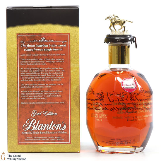 PLEASE NOTE: The wax seal on Blanton's bottles are prone to cracking in transit due to their design. Therefore, as stated in our T&C’s, we do not and will not accept liability should the seal be breached, broken, split or leak in transit. Additionally, please know due to the design of the internal cardboard packaging that surrounds the top of the bottles, it too may be torn. By bidding on this lot you have understood this to be true. Insurance is for complete breakage or loss in transit only.