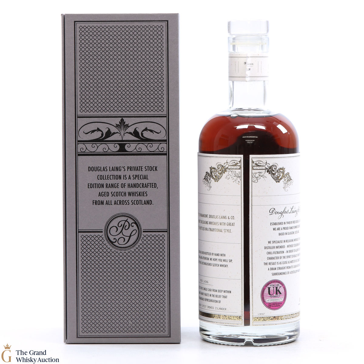 Due to the various ages of bottles and their seals, the condition of liquid is at the buyer's discretion and no claim can be lodged against failure/leakage in transit. Loss and breakage cover is available at 3% of the hammer price as standard. If the lot is not insured, no claim can be lodged against the courier or The Grand Whisky Auction for breakage or loss in transit.