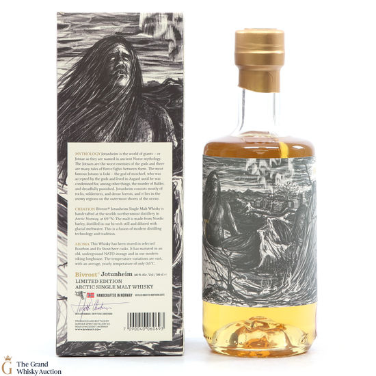 Bivrost Jotunheim is a single malt from the world's northernmost distillery! Produced using Nordic barley and matured in a combination of bourbon and ex stout casks.