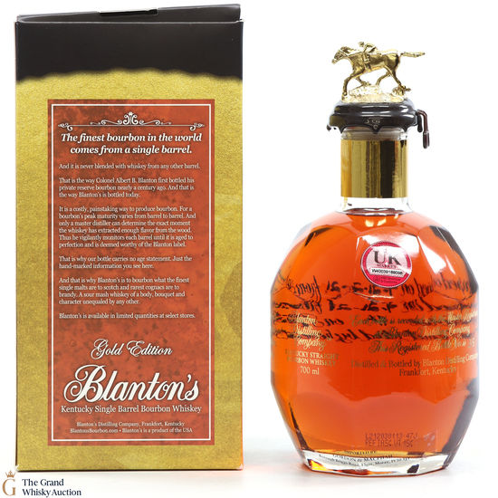 PLEASE NOTE: The wax seal on Blanton's bottles are prone to cracking in transit due to their design. Therefore, as stated in our T&C’s, we do not and will not accept liability should the seal be breached, broken, split or leak in transit. Additionally, please know due to the design of the internal cardboard packaging that surrounds the top of the bottles, it too may be torn. By bidding on this lot you have understood this to be true. Insurance is for complete breakage or loss in transit only.