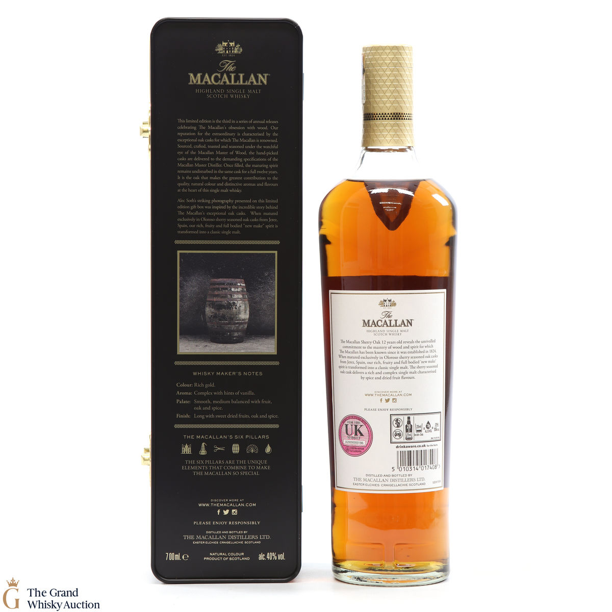 This limited-edition Macallan 12 year old was exclusively matured in sherry seasoned oak casks, from Jerez. It comes in a metal presentation tin featuring an image of a barrel shot by Magnum photographer Alex Soth.