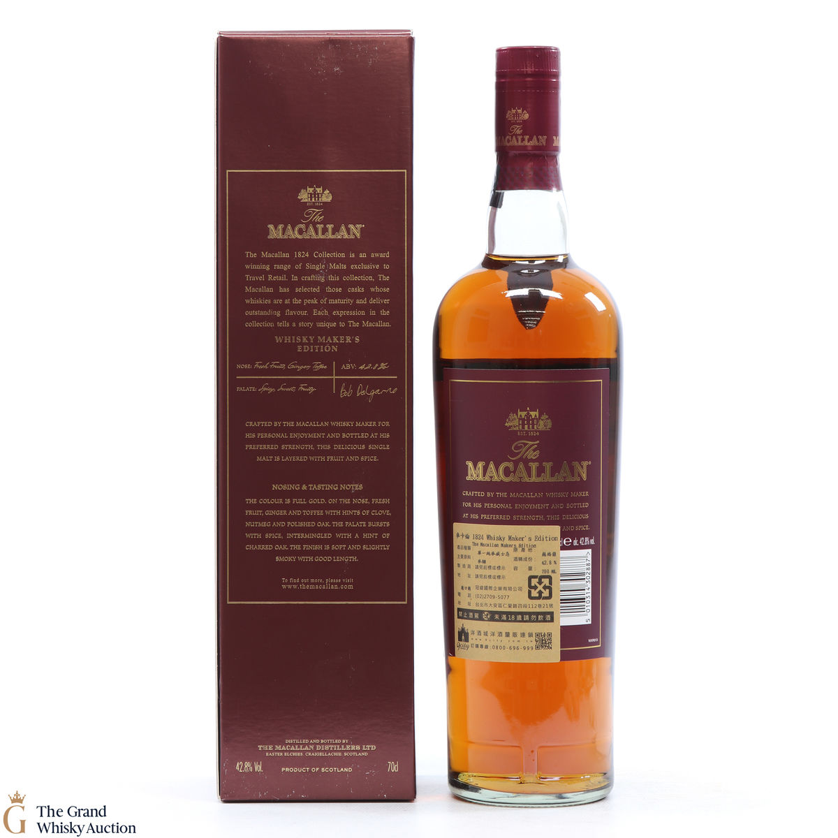 Released for the travel retail market, this single malt is part of The Macallan Whisky Maker's Edition Classic Travel Range. It was crafted by Bob Dalgarno, Macallan's distillery manager, using whisky drawn from a combination of Sherry and bourbon casks. It is bottled at his preferred strength of 42.8%.