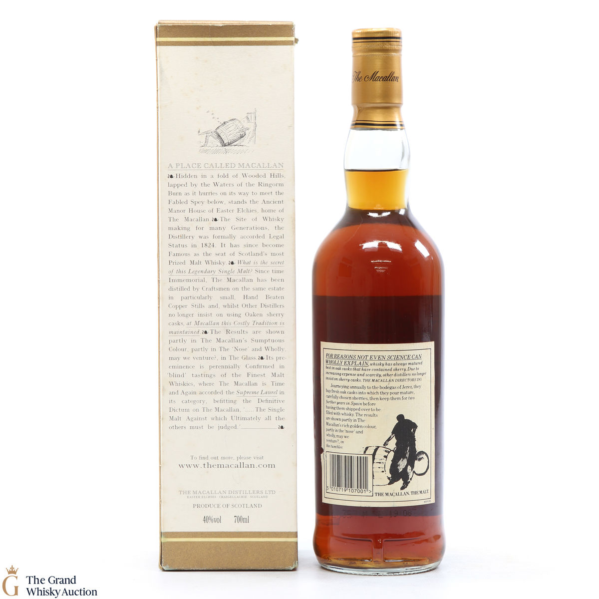 This is an old-style presentation of Macallan 10 Year old was bottled in the 1990's. This classic Speyside malt whisky matured in sherry oak casks from Jerez. Very collectable.