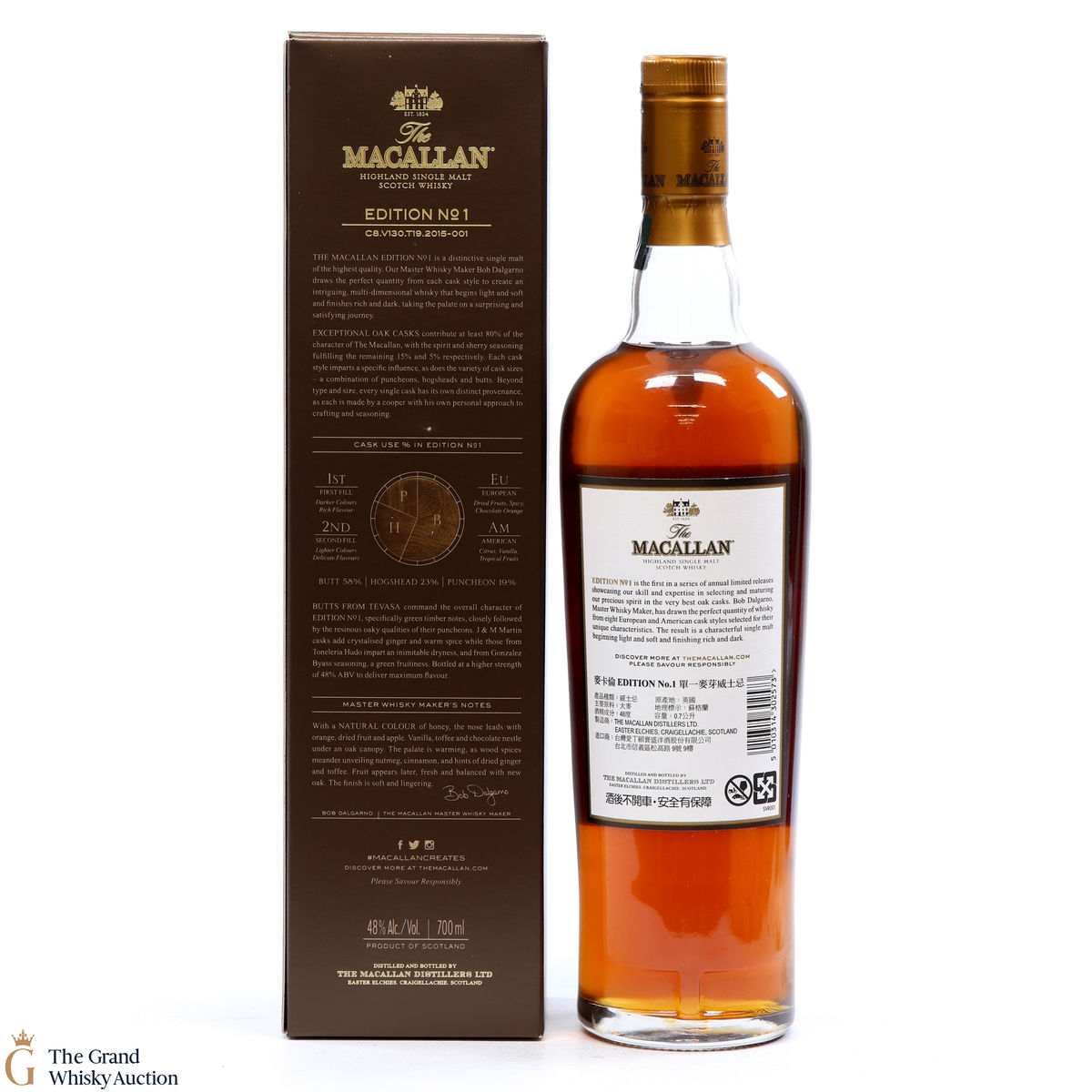 The Macallan Edition No. 1 is the debut expression in the Edition Series. This is a limited edition drawn from eight European and American oak cask styles selected for their unique characteristics.
