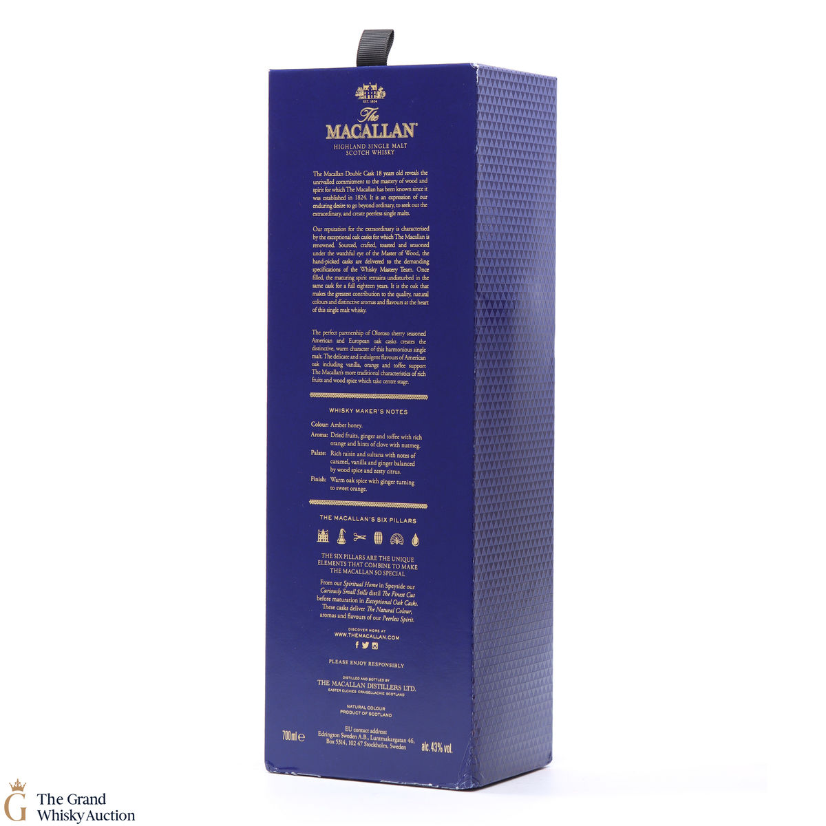 This 18 Year Old Macallan was matured in a combination of American and European Sherry oak for a minimum of 18 years. It is part of the Macallan Double Cask range, which marries the classic Macallan style and the sweetness of American oak.