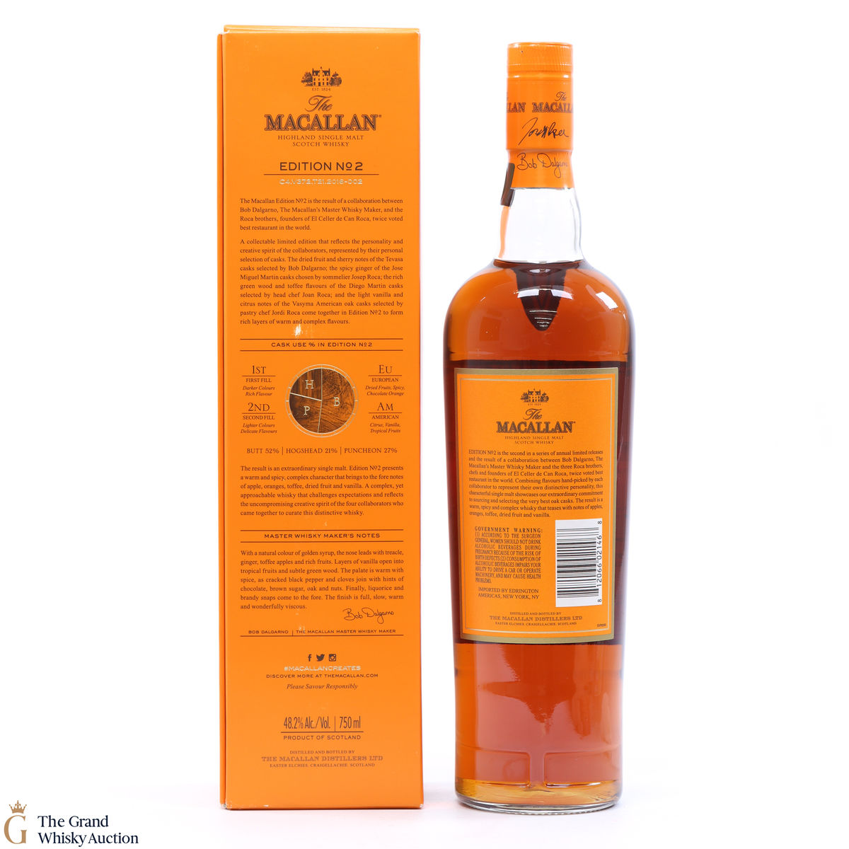 This is the second release from the Macallan Edition series. Edition No.2 is a collaboration between Macallan's master blender Bob Delgarno and legendary Spanish chefs Joan, Josep and Jordi Roca. The Rocas are the three brothers behind El Celler de Can Roca (named Best Restaurant in the World twice by Restaurant magazine). This single malt was drawn from a combination of sherry puncheons, butts and refill hogsheads.
