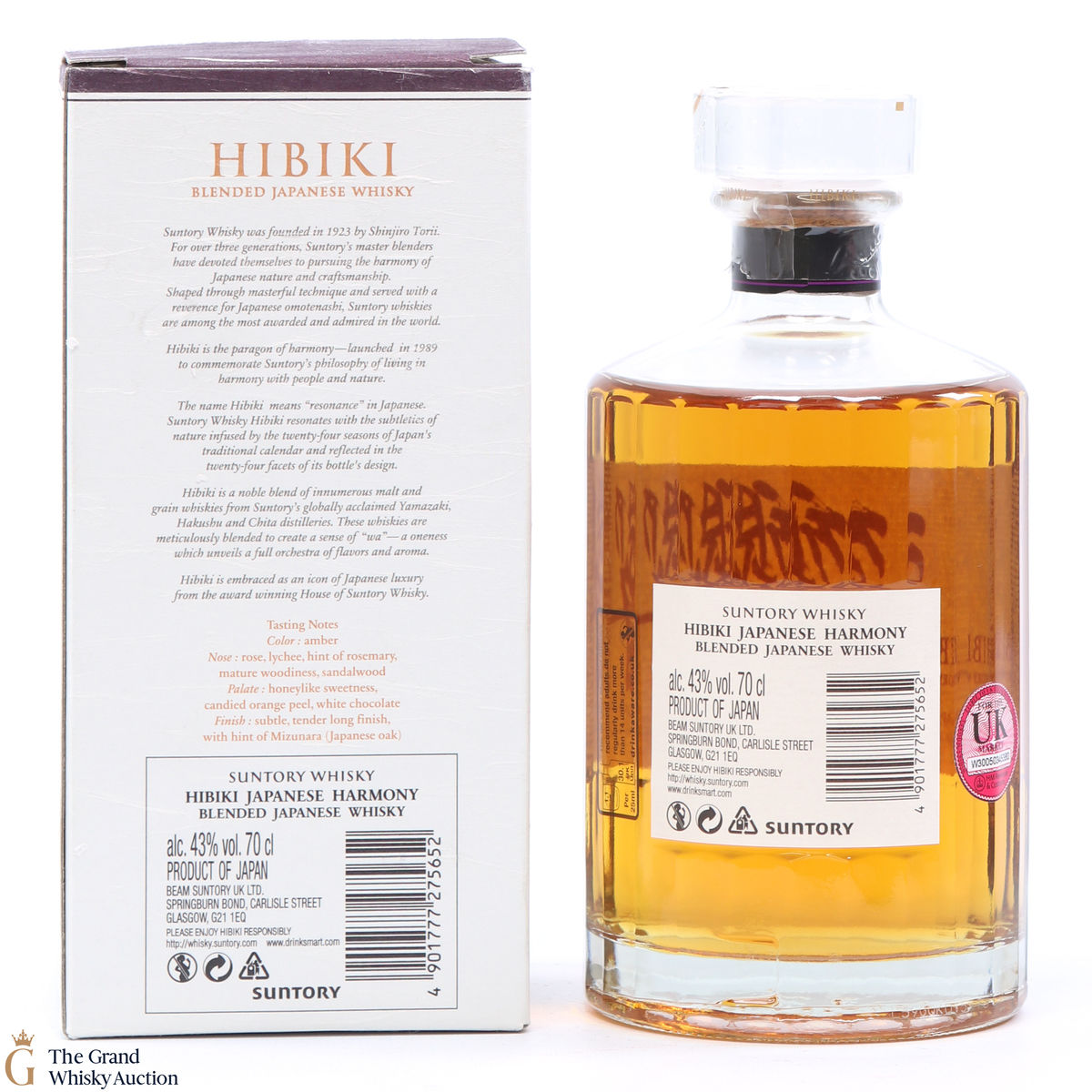 Hibiki Japanese Harmony is made with malt whiskies from the Yamazaki and Hakushu distilleries, as well as grain whisky from the Chita distillery. The whiskies are drawn from 5 different types of cask, including American white oak casks, Sherry casks and Mizunara oak casks. The blend itself was crafted by the Suntory Whisky blending team, led by Master Blender Shingo Torii. An elegant expression, with wafts of honey, orange, a herbaceous touch or two and light oak