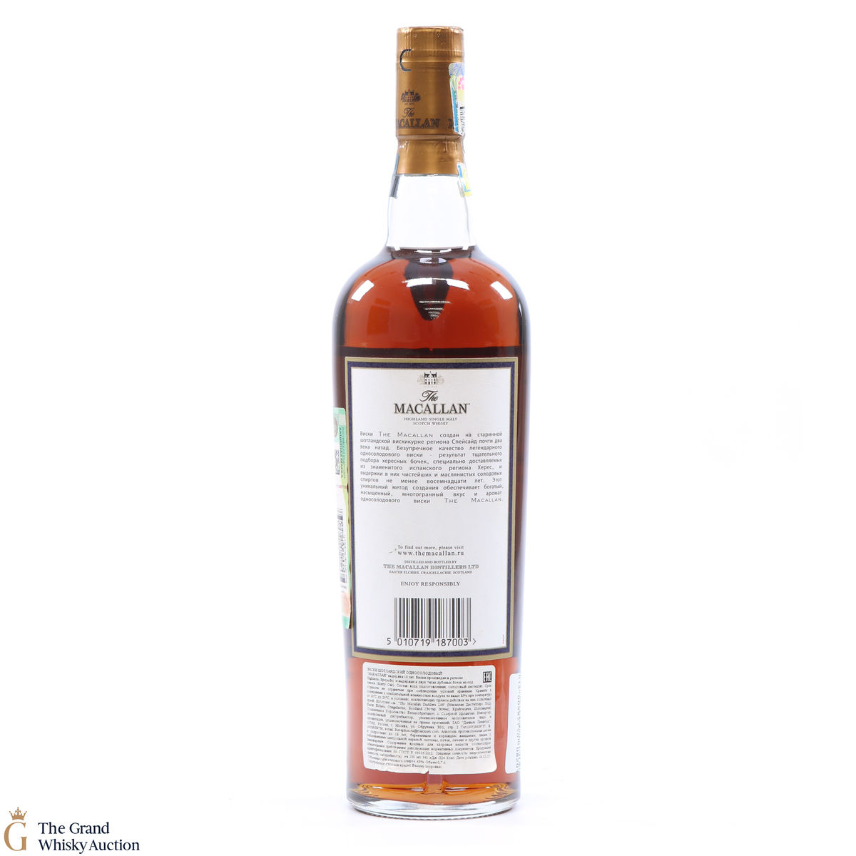 Due to the various ages of bottles and their seals, the condition of liquid is at the buyer's discretion and no claim can be lodged against failure/leakage in transit. Loss and breakage cover is available at 3% of the hammer price as standard. If the lot is not insured, no claim can be lodged against the courier or The Grand Whisky Auction for breakage or loss in transit.