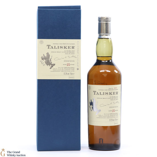 This is a beautiful 25-year-old single malt Scotch whisky from the Talisker distillery. Matured in refill American Oak casks, it was bottled at the cask strength of 57.2% and released in 2001. This is a limited edition of only 15600 bottles released as part of Diageo's 'Super Premium' Editions.