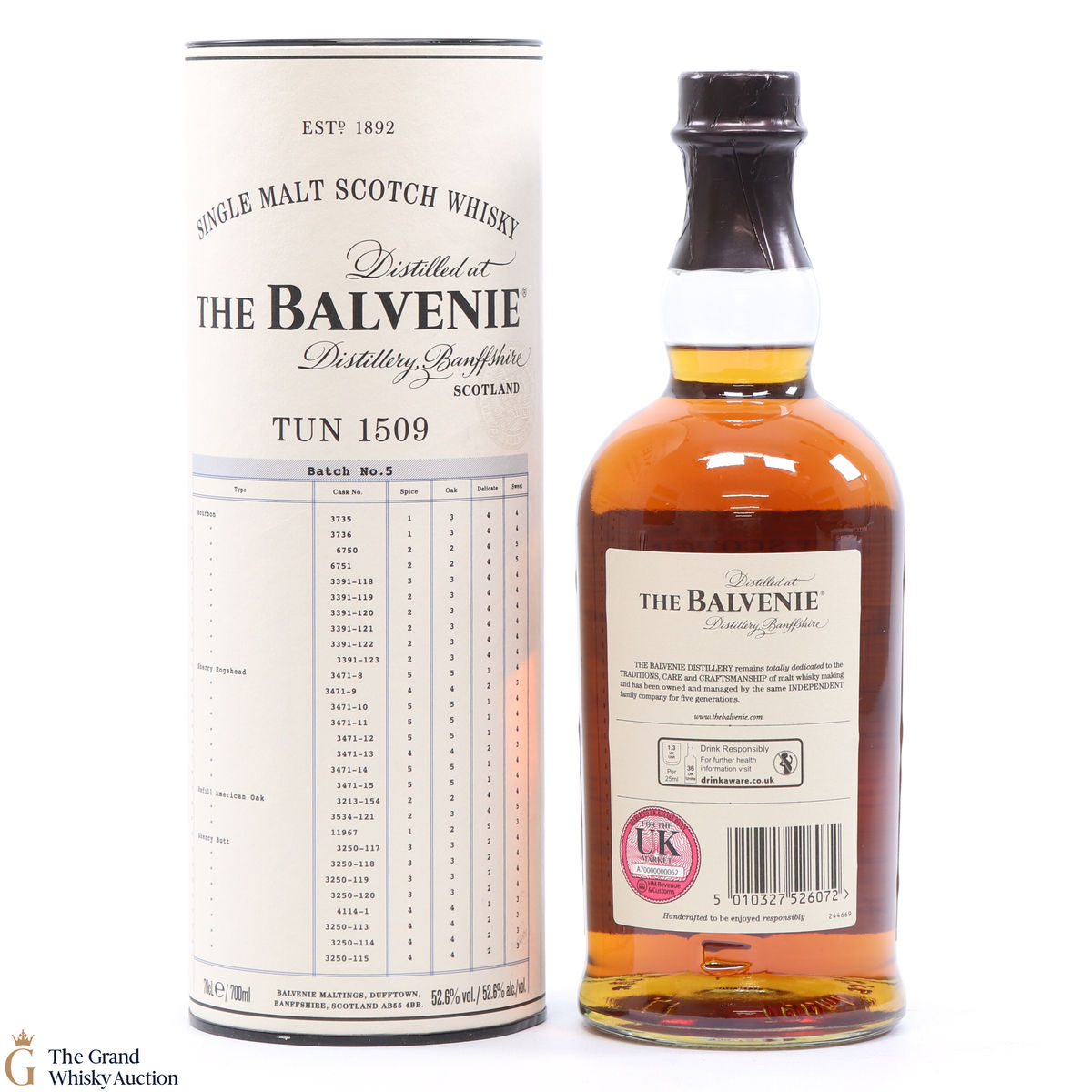 This is the fifth batch of Balvenie's Tun 1509 single malt Scotch whisky.