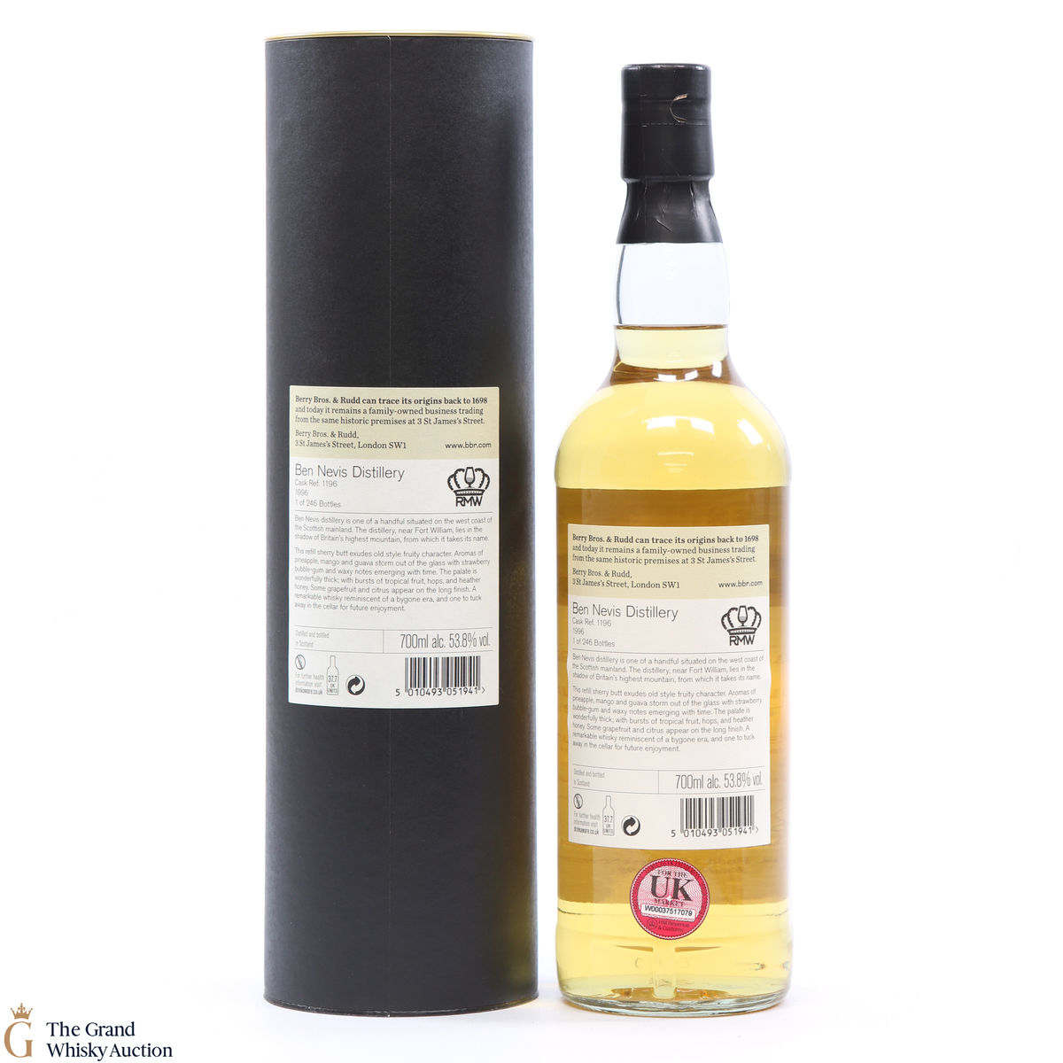Distilled in 1996 and bottled in 2018 by Berry Brothers and Rudd. This release was exclusively for Royal Mile Whiskies in Edinburgh. This is one of only 246 bottles that were bottled at cask strength.