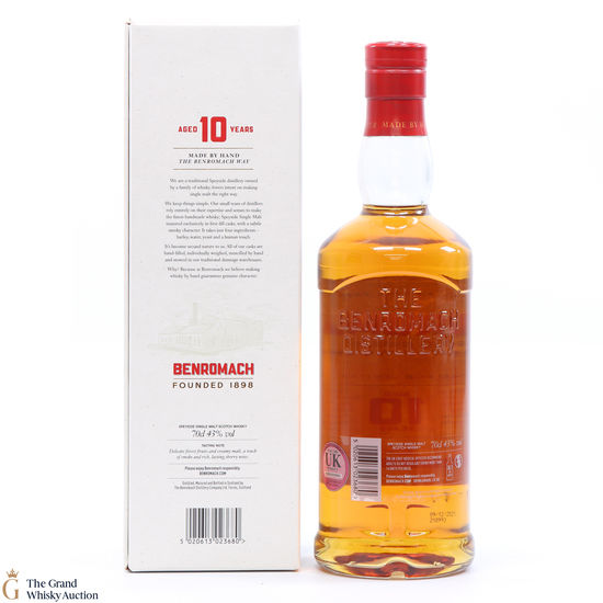 This is a 10 year old single malt from Benromach Distillery in Speyside. It was handcrafted by just 2 men, at what was Speyside's smallest distillery.