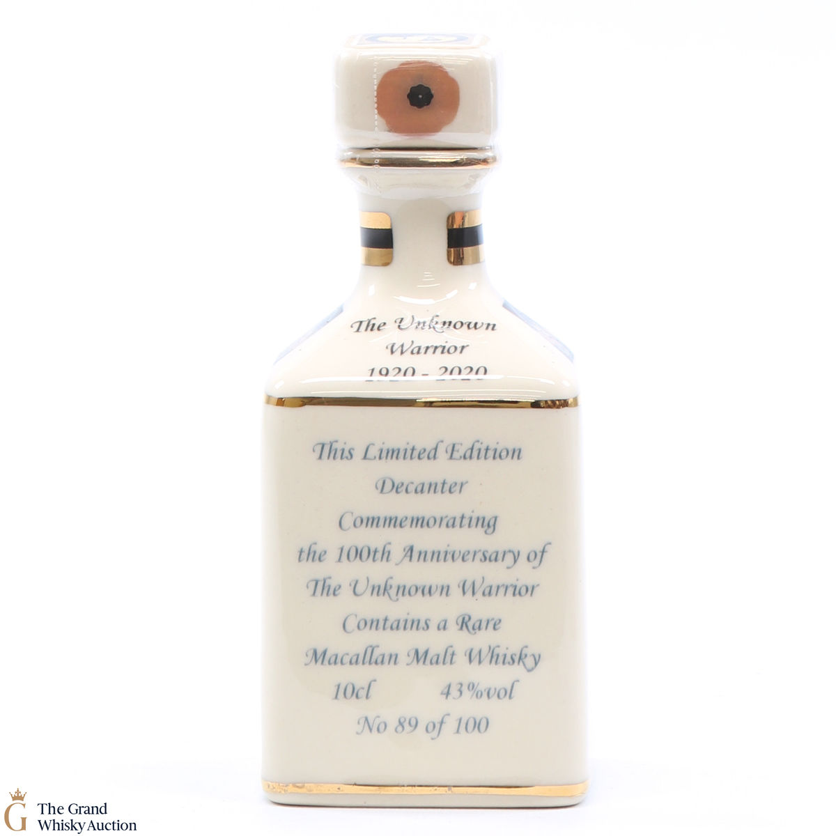 A mini decanter commemorating the 100th Anniversary of The Unknown Warrior. Filled with a rare Macallan, this is one of 100 bottles released.