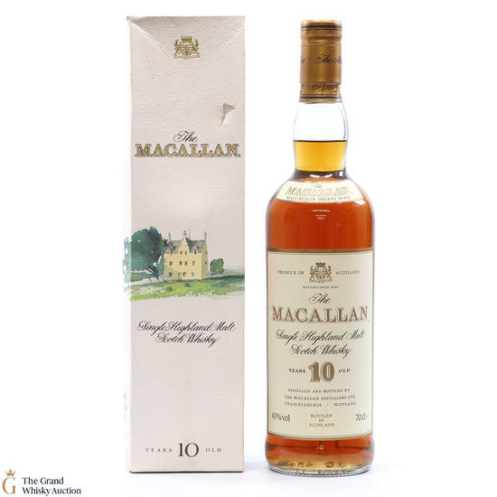 This is an old-style presentation of Macallan 10 Year old was bottled in the 1990's. This classic Speyside malt whisky matured in sherry oak casks from Jerez. Very collectable.
