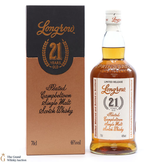 This 21-year-old Longrow, is a limited edition from Springbank Distillery in Campbeltown. This is one of only 3,600 bottles produced after maturation in 60% Sherry and 40% ex-Bourbon casks.