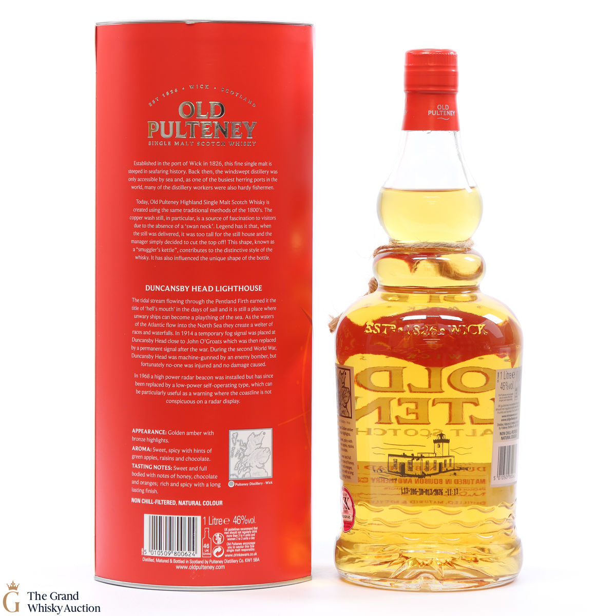 Named after Duncansby Head lighthouse, this travel retail Old Pulteney single malt Scotch whisky is matured in a combination of American ex-bourbon and Spanish ex-Sherry casks.